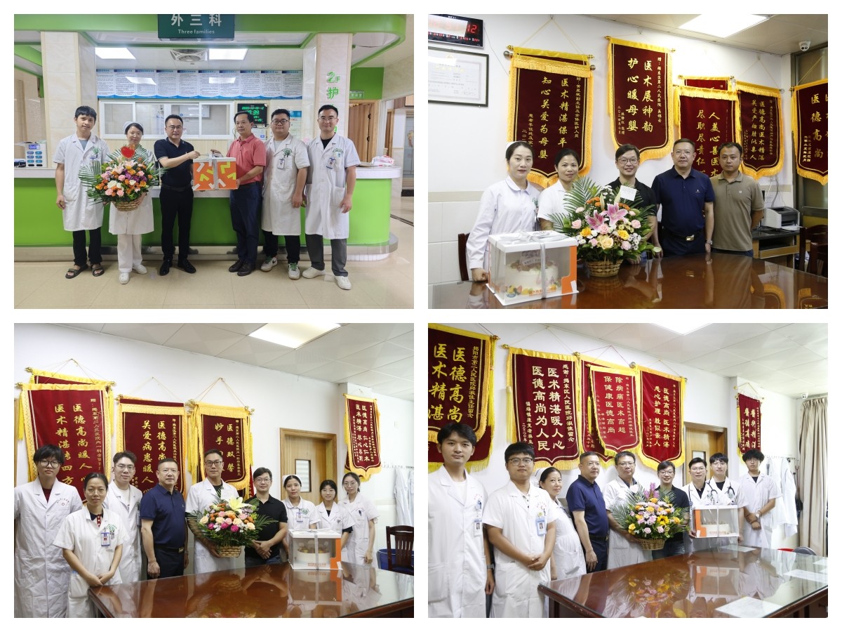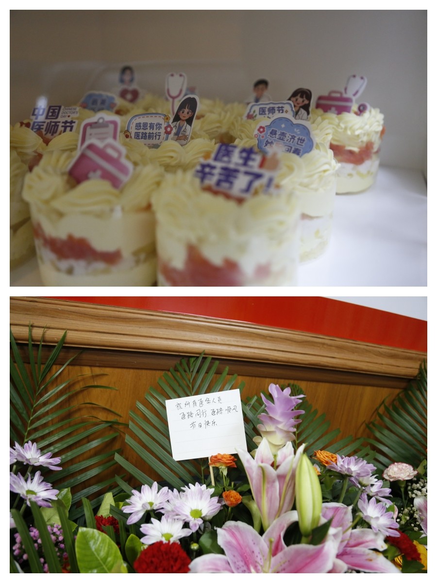 “感谢医院对我们的关心,这份礼物让我们倍感温暖!”医生们接过鲜花和蛋糕,脸上洋溢着幸福的笑容。