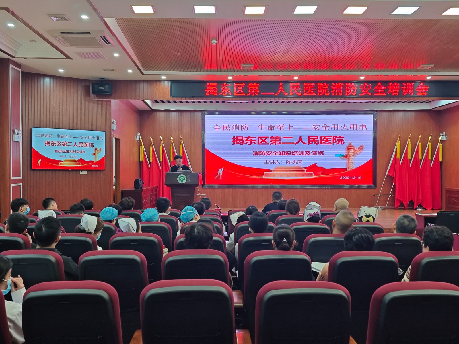 为积极响应全民消防安全知识普及号召,进一步强化医护人员的消防安全意识与实践技能,12月15日下午,揭东区第二人民医院组织开展了消防安全培训会与实操演练。